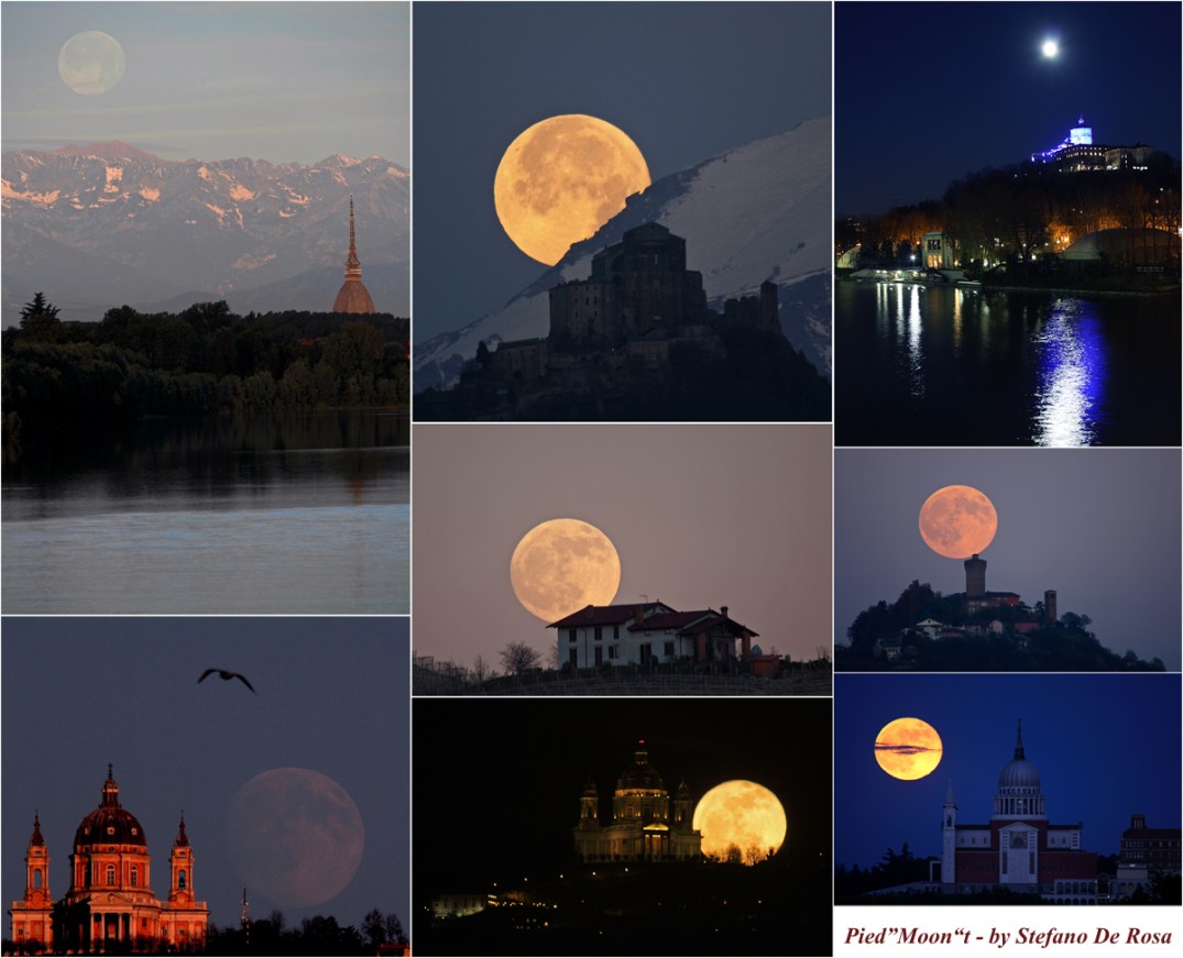 Ho appena terminato un poster con immagini della Luna Piena “catturata” accanto a monumenti e paesaggi piemontesi che ho, di conseguenza, chiamato Pied”moon”t. I monumenti (e le relative “Lune”) inclusi nel mosaico sono (da sinistra in alto in senso orario): la Mole Antonelliana (w/ Strawberry Moon), la Sacra di San Michele (w/post-eclipse Cold Moon), Santa Maria del Monte church (w/ Not a Blue Moon), Santa Vittoria Castle (w/Beaver Moon), Basilica di San Giovanni Bosco (w/ Strawberry Moon), the Basilica of Superga by night (w/ Snow Moon), Basilica of Superga by day (w/ Old fashioned Blue Moon) e al centro la Wolf Moon sorge dietro una casa nelle Langhe .